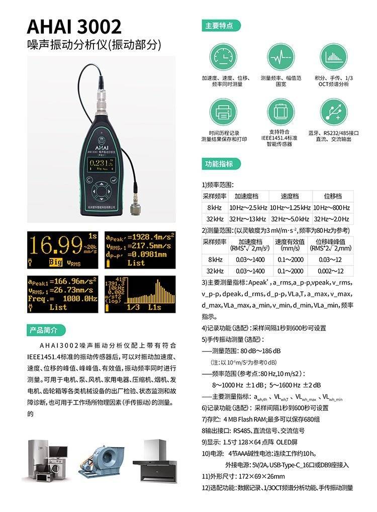 爱华AHAI3002噪声振动分析仪 可同时测量振动速度及频率等